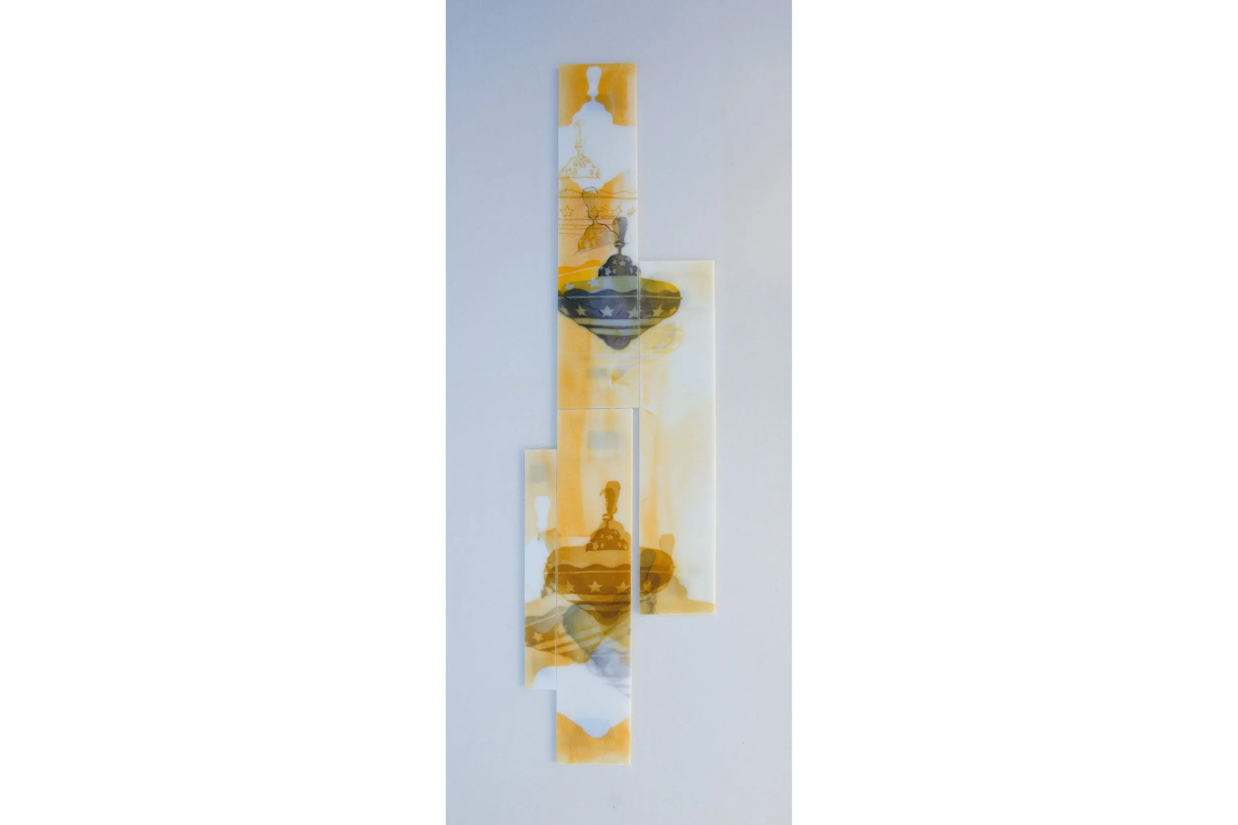As I look closer, I can see that the toys are actually just pictures of toys on a large loop of paper, like wallpaper, that repeats over and over again. Somewhere there is a little motor or handle, slowly turning the entire contraption, but I cannot see it. When I realize there are edges, and that the picture loops around again, I relax, and begin to watch the pattern. The methodical falling of toys never changes, their angles and positions to each other never shift, and they never accumulate around me.